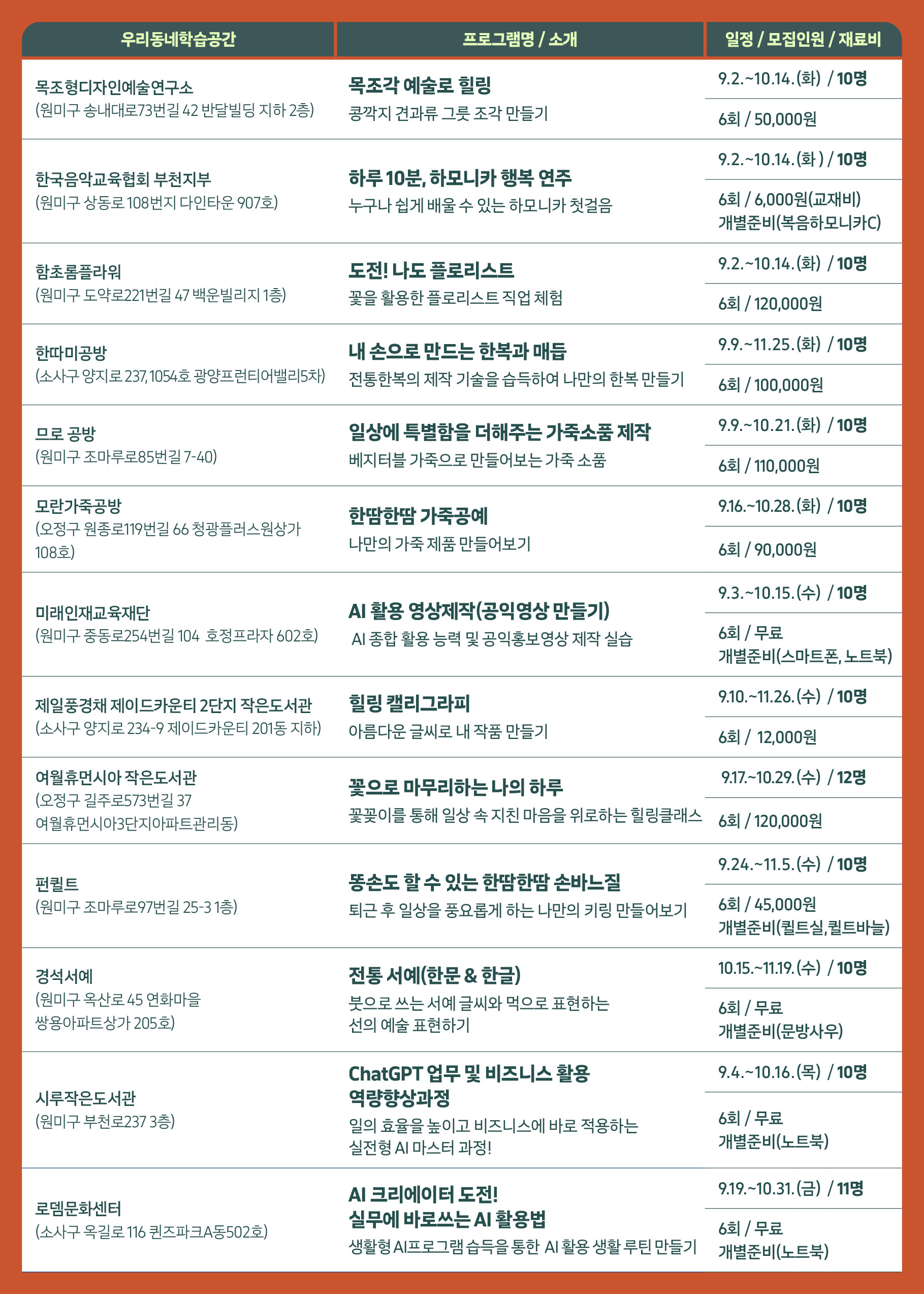 ■ 문 의 : 부천시평생학습센터(☎ 032-625-4064)