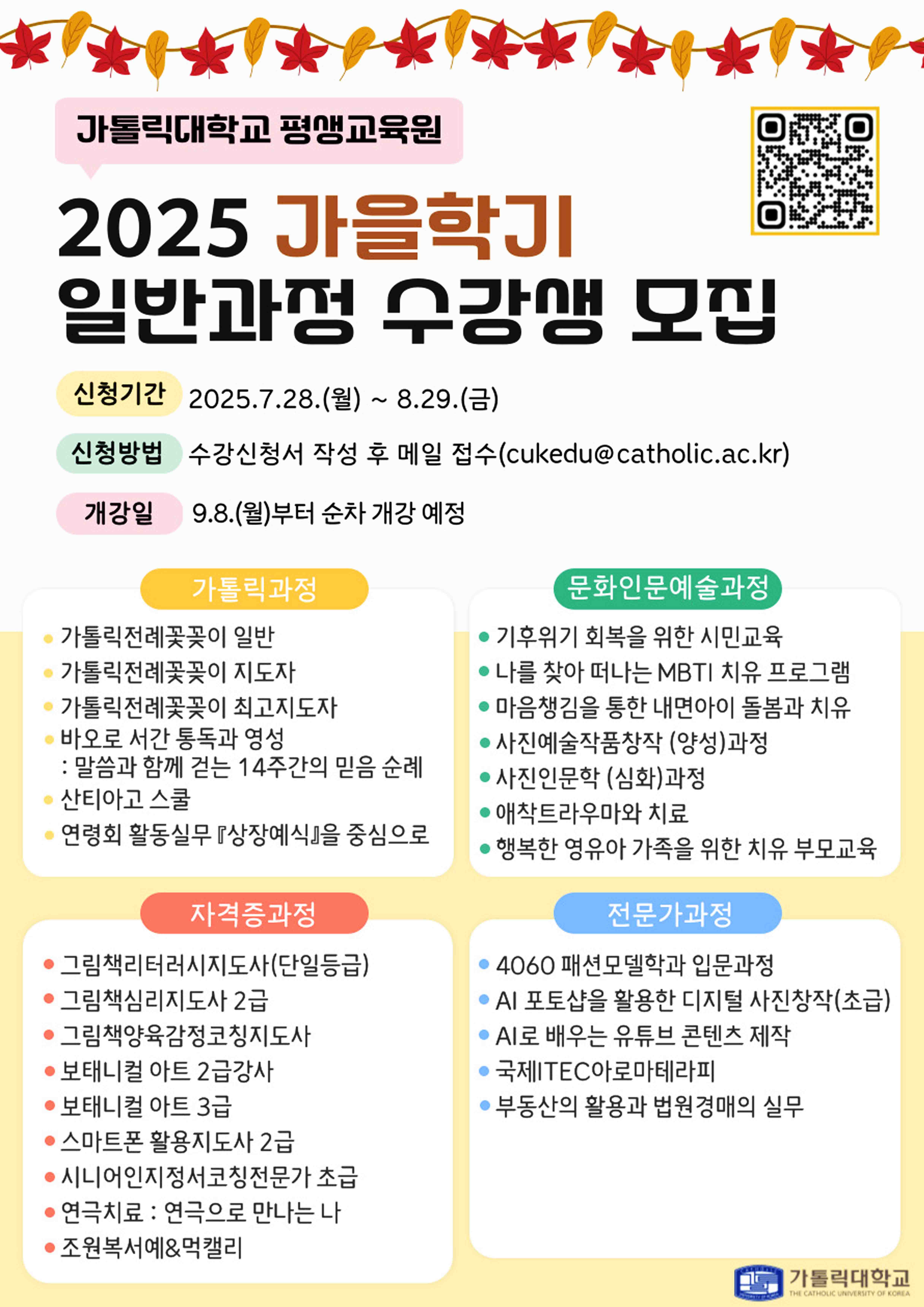 2025 가을학기 일반과정 수강생 모집