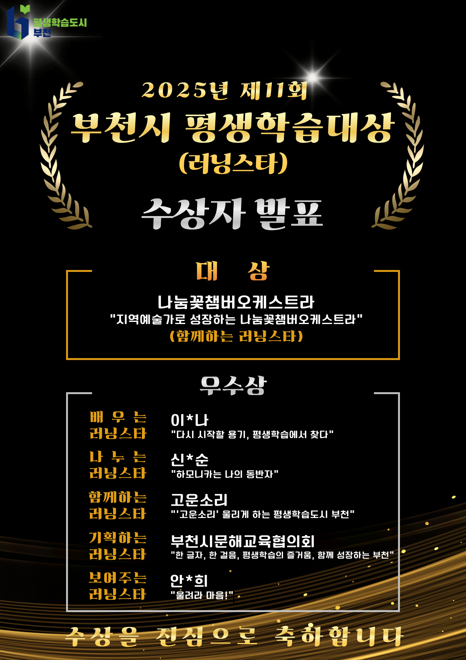 부천시 평생학습 대상(러닝스타)에 대한 관심과 참여에 진심으로 감사드립니다.