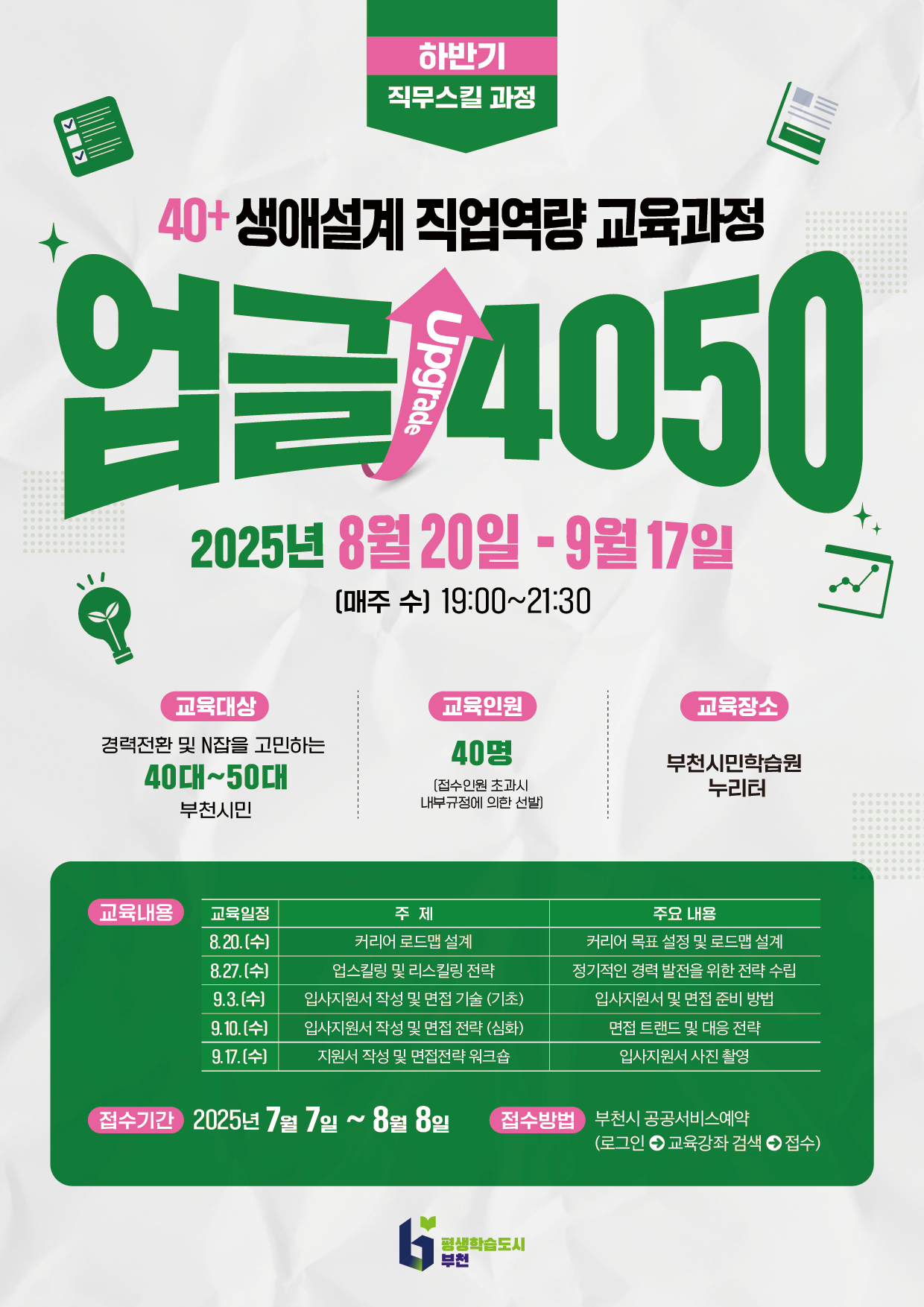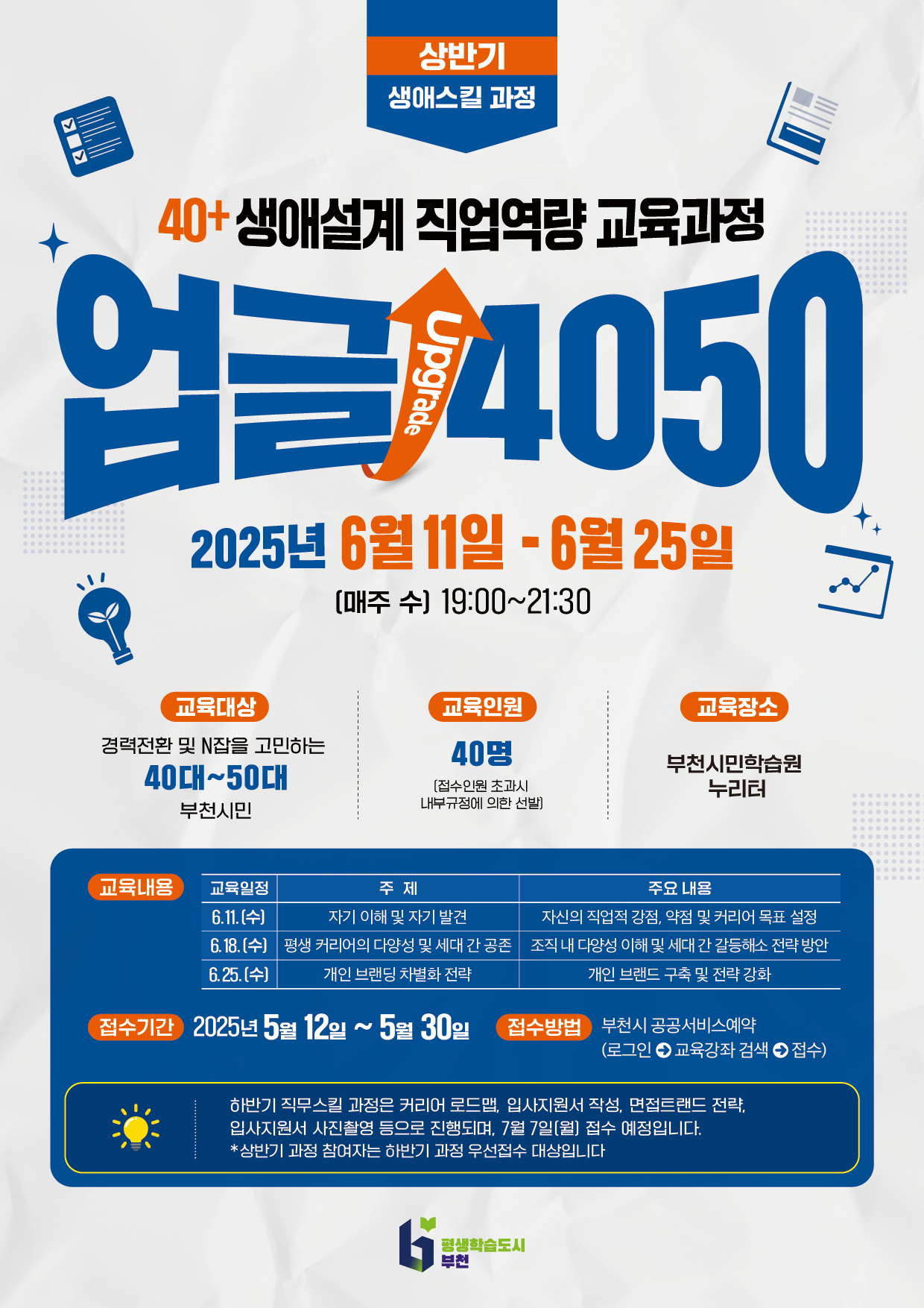 40+ 생애설계 직업역량 교육과정 [업글 4050]의 참여자를 모집합니다.