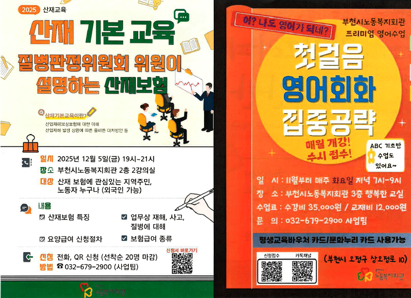 (부천시노동복지회관) 하반기 신설 프로그램-캘리.한국어.영어회화 등